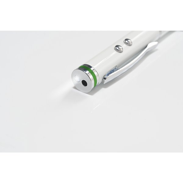Penna Stylus multifunzione. Penna capacitiva per touchscreen, penna a sfera, puntatore laser e luce a LED.1 penna stylus, 4 funzioni. Penna stylus capacitiva per touchscreen che può anche essere utilizzata come penna a sfera, puntatore laser e torcia tascabile a LED. Completa i tuoi dispositivi mobili.Consente di utilizzare i touchscreen in modo preciso il display touchscreen dei tuoi dispositiviProtegge lo schermo del tablet dalle impronte e dalla polvereLa punta in morbido silicone protegge il display touchscreen da graffi e segniPenna a sfera di alta qualità (refill D1, lunghezza 67 mm)Puntatore laser integrato per le presentazioniTorcia tascabile a LED integrataComprensiva di 3 batterie AAA